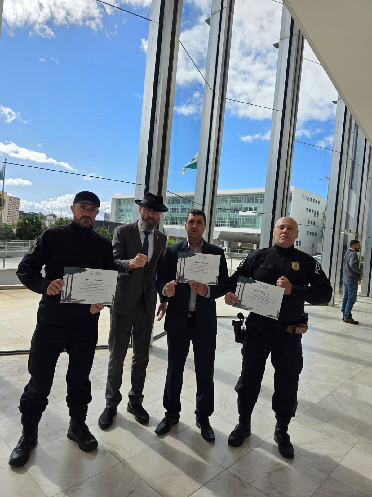 A homenagem foi uma proposição do Delegado e Deputado Estadual Dr. Tito Barichello, em razão da atuação, empenho, rapidez e coordenação da equipe na identificação do suspeito e na elucidação do caso. O crime ocorreu no dia 31 de março deste ano, na ocasião, uma sacola preta contendo um artefato explosivo de fabricação caseira foi localizada na plataforma do Terminal do Boqueirão, uma área de grande circulação.